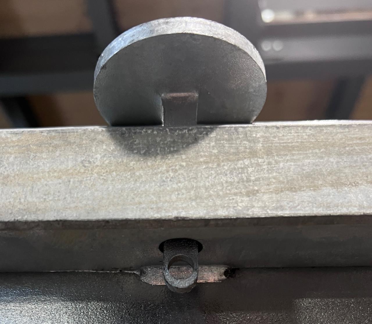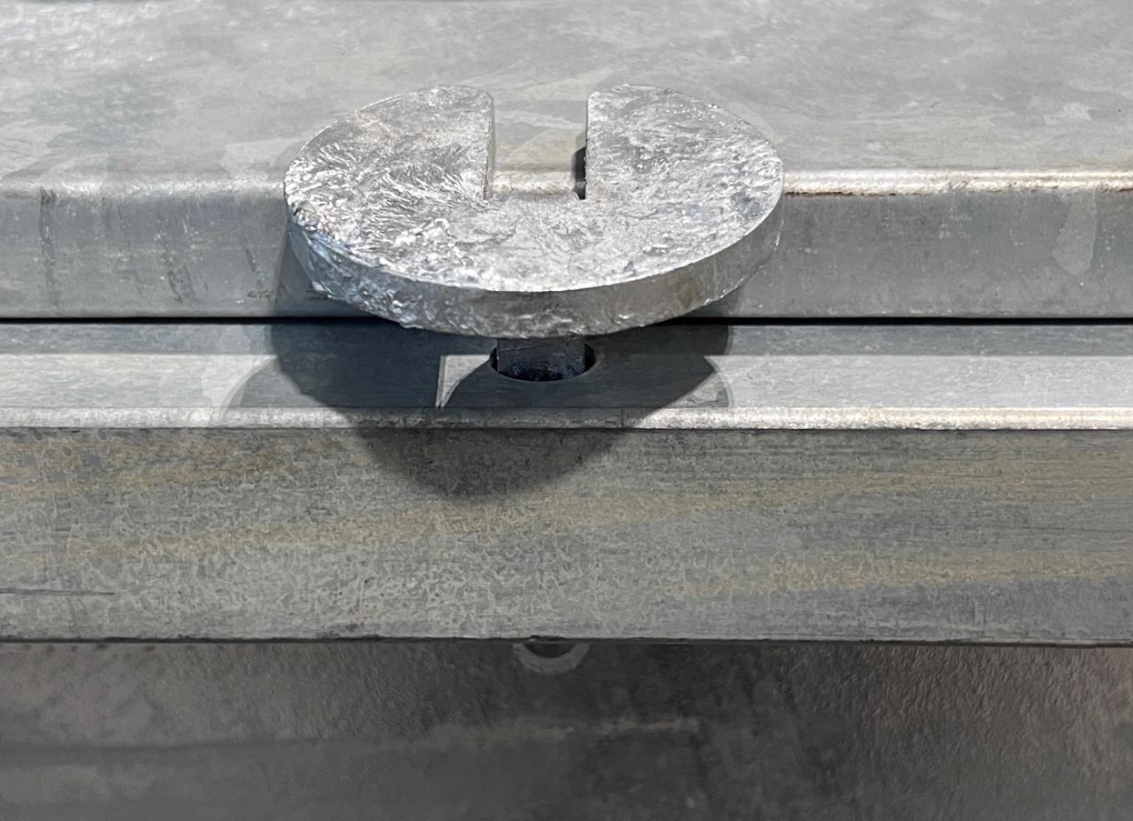 Der Deckel des Abfallcontainers wird mittels Pilzschloss und einem einfachen Vorhängeschloss abgeschlossen.