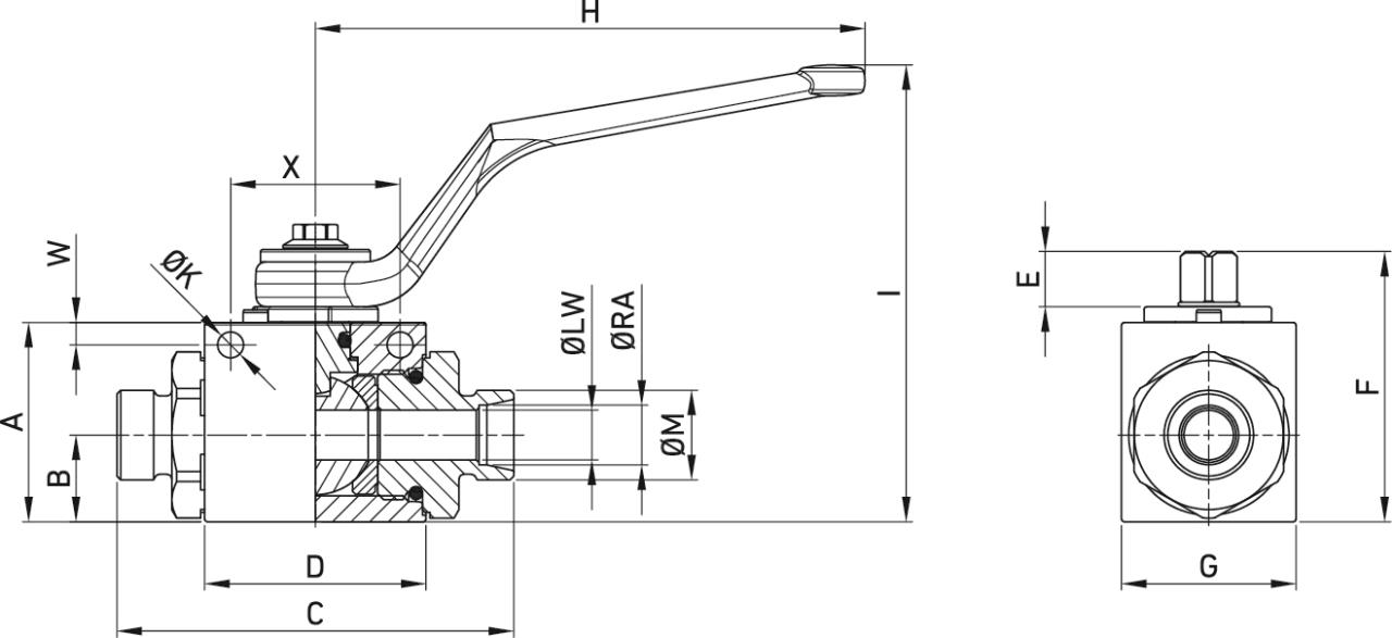 2-Wege-Blockkugelhahn manuell, AG / AG