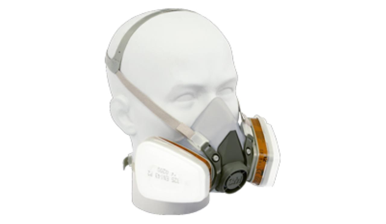 Atemschutzmaske Serie 6000 von 3M aus hautfreundlichem Kunststoff mit sehr guter Tragkomfort. Bequeme Kunststoff-Kopfhalterung mit verstellbarer, elastischer Textil-Bänderung und Clip. Doppelfilter-System mit Bajonett-Schnellverschluss.