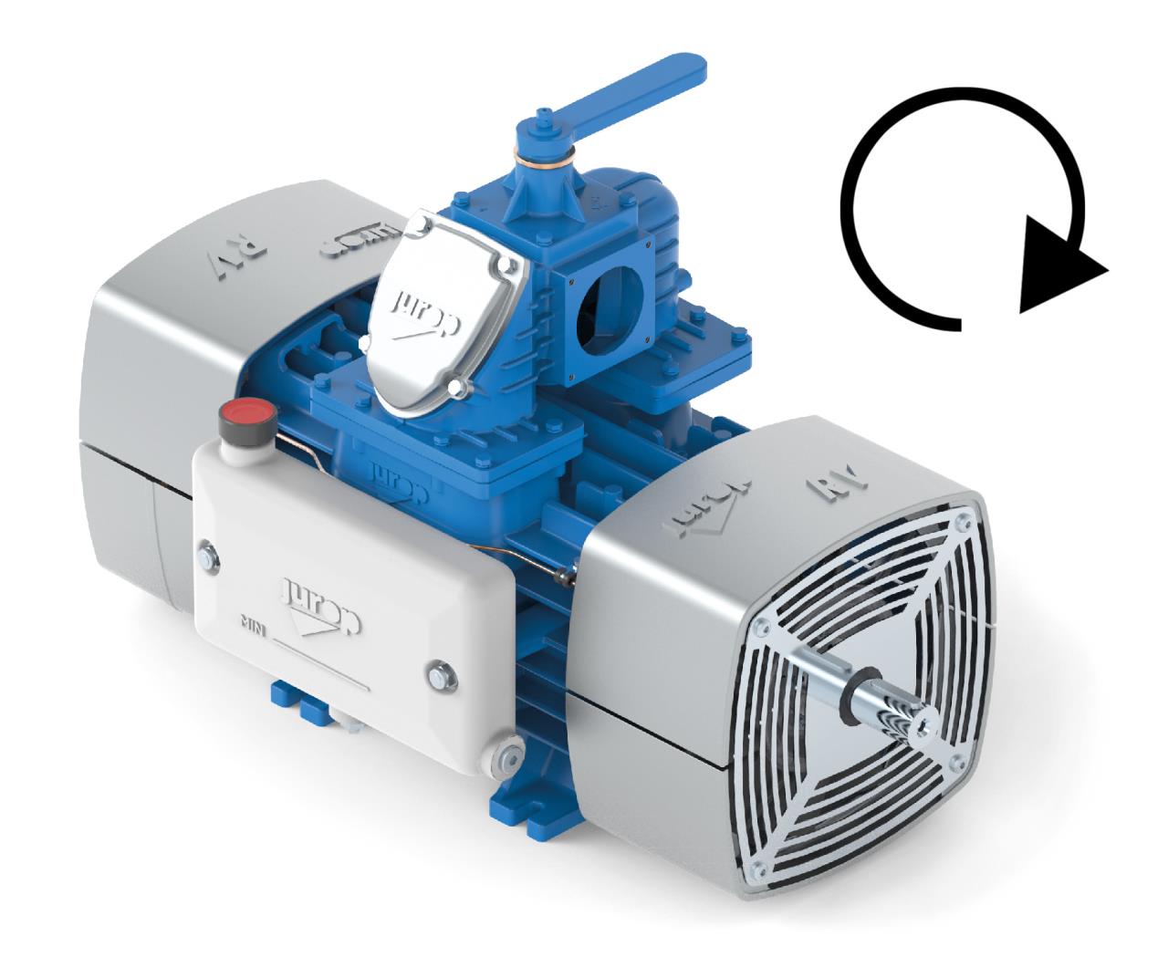 Deux ventilateurs à ailettes montés sur l'arbre du rotor dirigent l'air pour refroidir les nervures du corps de la pompe. Ce courant d'air forcé permet de prolonger la durée de vie de la pompe. Une vitesse de rotation plus faible diminue le degré de refroidissement.