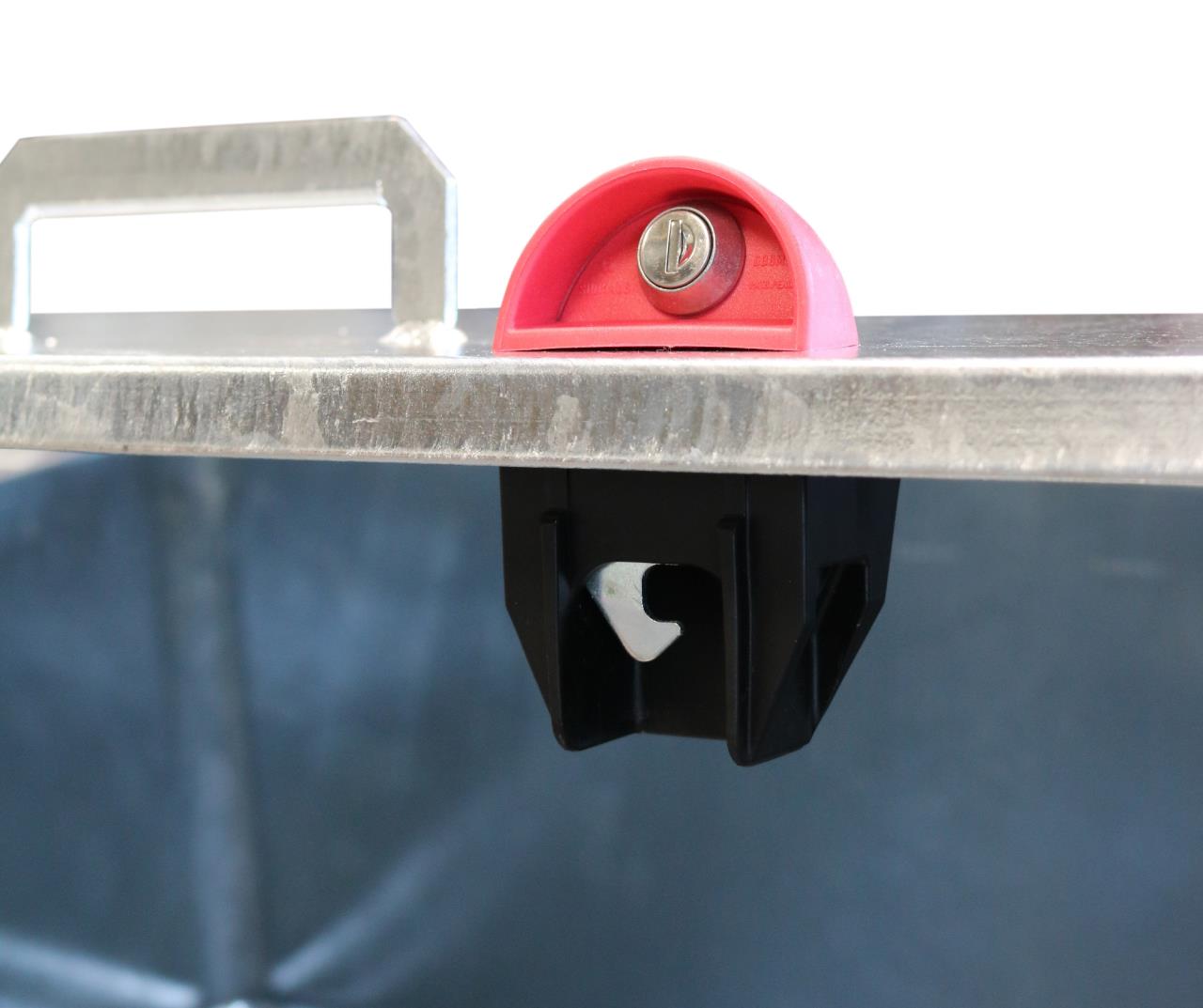 Mit dem praktischen ContainerKippschloss öffnet der Deckel mittels Schlüssel oder automatisch bei der Entleerung.
