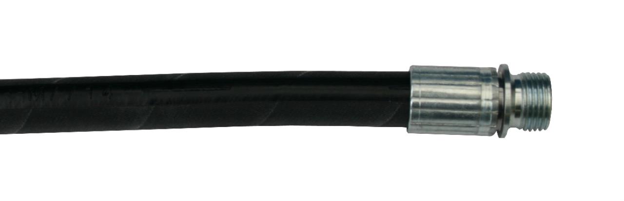 Der Spülschlauch besteht aus einem ölbeständigen, synthetischen Gummi mit hoher Abrieb-, Ozon und Witterungsbeständigkeit. Druckträger ist ein hochzugfestes Stahldrahtgeflecht aus vergüteten, oberflächengeschützten Stahldrähten.