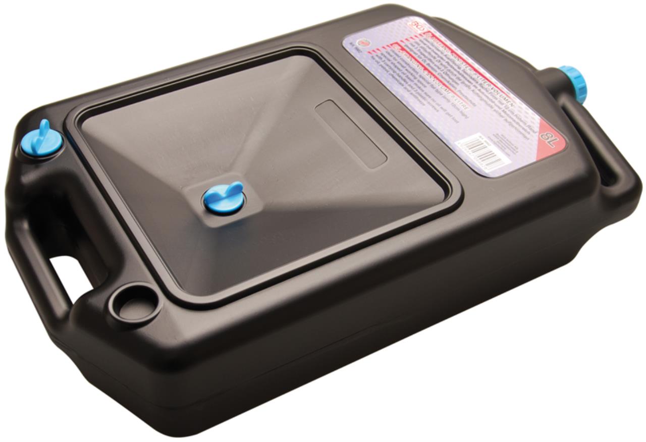 Geschlossene Ausführung mit besonders niedriger Höhe. Ideal bei geringen Platzverhältnissen im Automobil- und Motorradbereich. Das ablaufende Öl wird durch die große Auffangmulde sicher aufgenommen. Geeignet für Öl, Benzin, Chemikalien, Frostschutz etc.