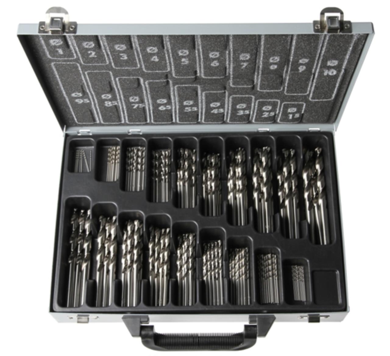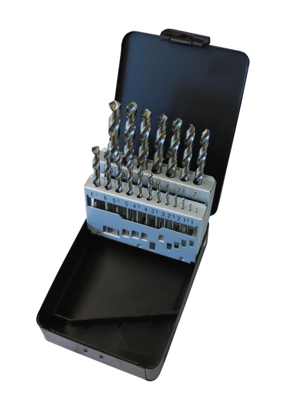 | 602 402 | 10 Stk. von Ø: 1.0, 1.5, 2.0, 2.5, 3.0, 3.5, 4.0, 4.5, 5.0, 5.5, 6.0, 6.5, 7.0, 7.5, 8.0 | 5 Stk. von Ø: 8.5, 9.0, 9.5, 10.0mm | 170 | HSS | gehärtet | 4.25 | 1 | rechts | Metallbox | 296.00 | |