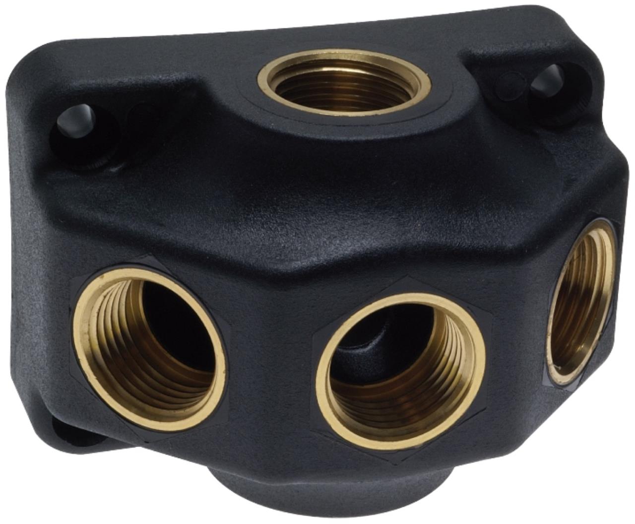 | 10 15 088 | 1/2 | Eingang oben: 1 x 1/2", seitlich: 3 x 1/2", Ausgang: 1 x 1/2" durchgehend | 3-fach | Kunststoff | 15 | 31.50 |
