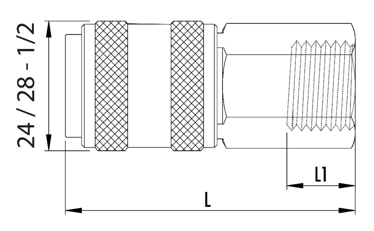 - Kupplung mit Entriegelungshülse zum Ziehen.