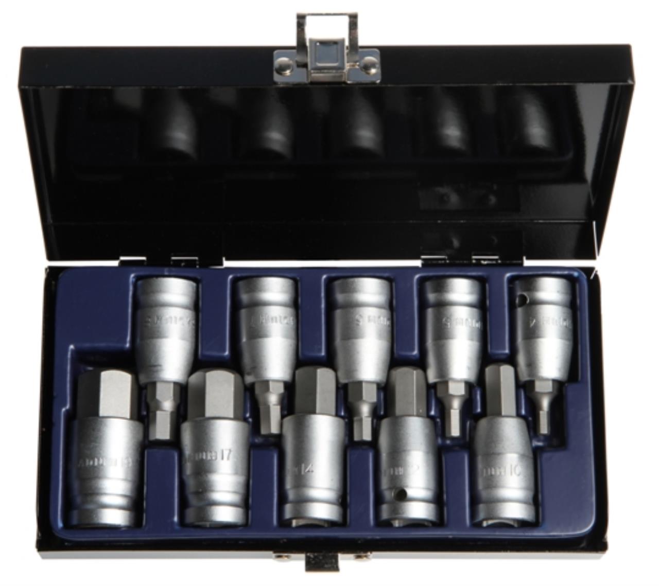 Inbus-Satz 1/2" 10-teiliger Satz mit kurzen Innensechskant-Bits in stabiler Metallbox. Technische Daten Bestehend aus Inbus kurz 4 - 5 - 6 - 7 - 8 - 10 - 12 - 14 - 17 - 19 mm Varianten Bitte die Tabelle nach links scrollen, um alle Informationen zusehen und einen Artikel in den Warenkorb zu legen. Art.-Nr. Satz Version Gewicht [kg] Ausführung VP [CHF] MWSt 8.1% exkl. 600 625 10-teilig Chrom-Vanadium 1.238 Aussensechskant 53.00 Lagerbestand: 10+ Set
