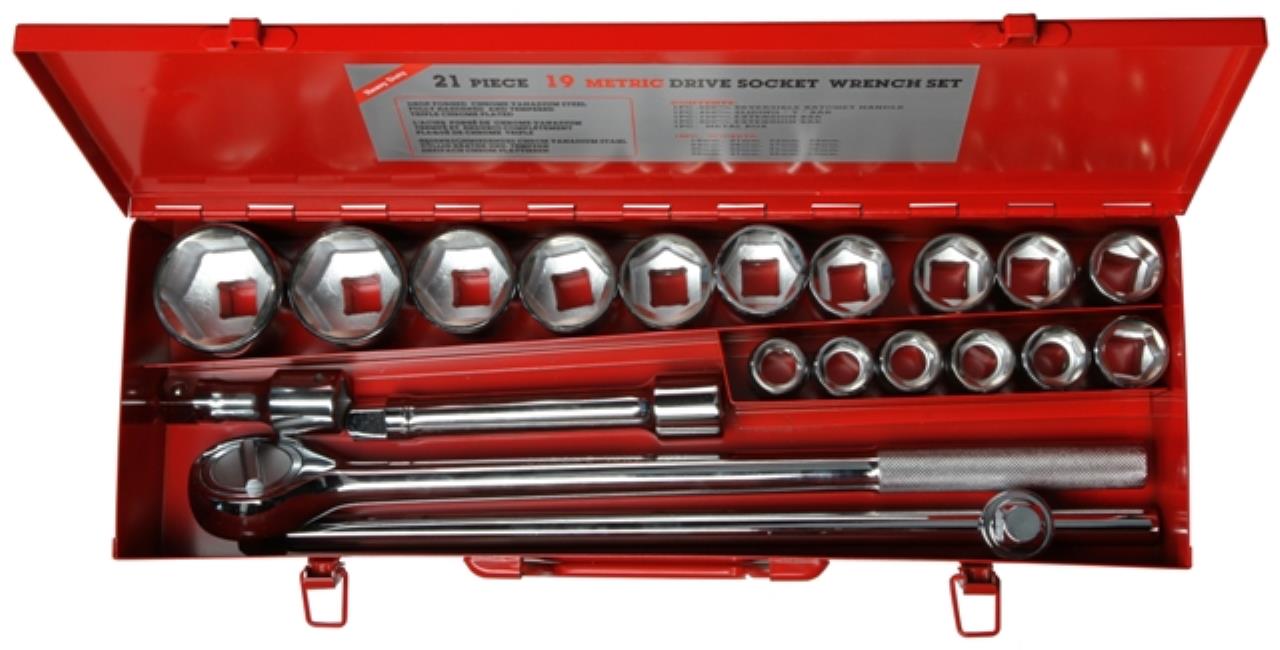 Steckschlüsselsatz Profi 3/4", 20-teilig 20-teiliger Steckschlüsselsatz in 3/4"-Profi-Ausführung, gehärtet. Inklusive stabilem Stahlkoffer. Technische Daten Bestehend aus 19 - 21 - 22 - 23 - 24 - 26 - 27 - 29 - 30 - 32 - 35 - 36 - 38 - 41 - 46 - 50 1 Umschaltknarre 1 T-Griff 2 Verlängerungen Varianten Bitte die Tabelle nach links scrollen, um alle Informationen zusehen und einen Artikel in den Warenkorb zu legen. Art.-Nr. Antrieb [Zoll] Inhalt [Stück] Typ Material Oberfläche Gewicht [kg] Farbe Profil Ausführung VP [CHF] MWSt 8.1% exkl. 600 440 3/4 20 Roxfort HSS verchromt 13 rot Innenvierkant Innensechskant 199.00 Lagerbestand: 10+ Stück