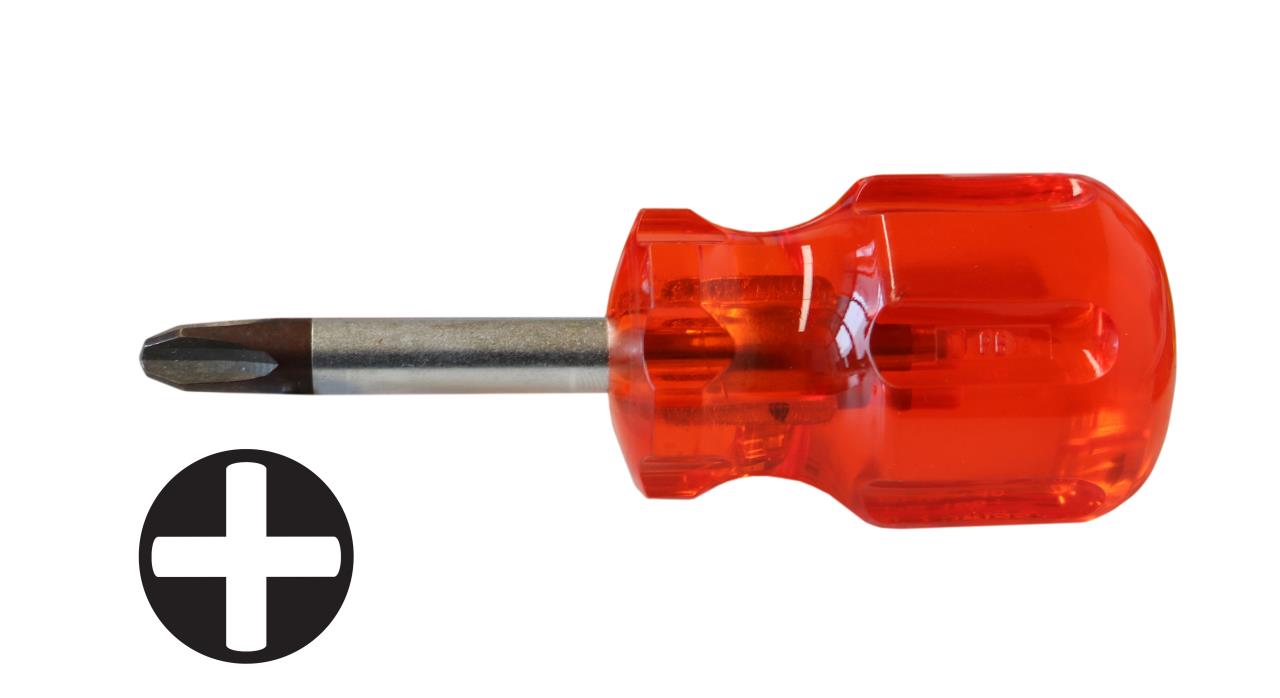 Kreuz-Schraubenzieher im Mini-Format mit kurzer Klinge und schmalem Griff.