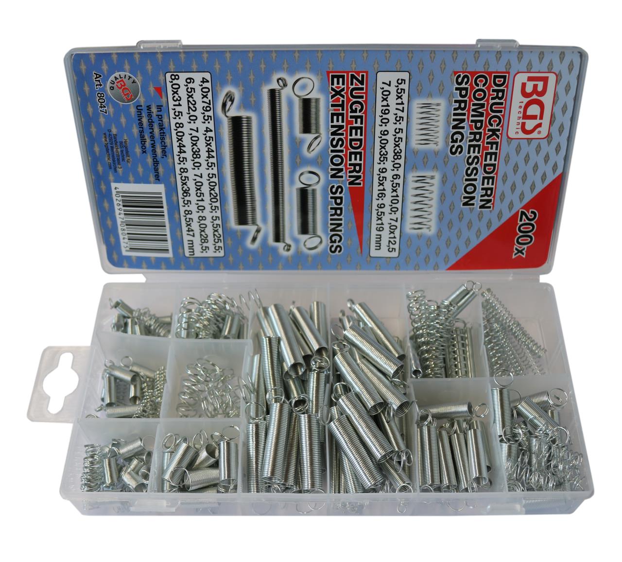 Sortiment beinhaltet Zug- und Druckfedern in verschiedenen Grössen.