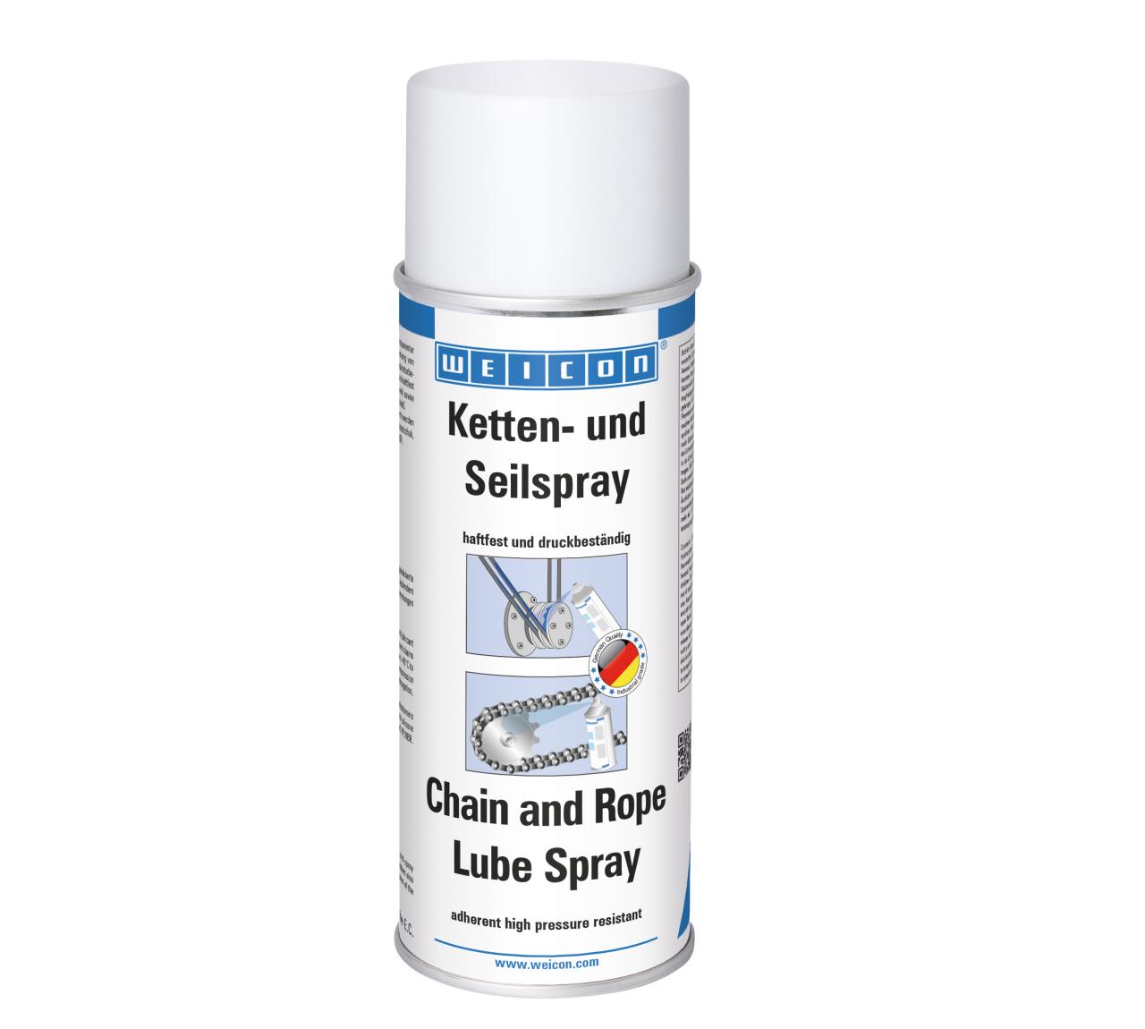 WEICON Ketten- und Seilspray ist ein synthetischer, transparenter Haftschmierstoff für die dauerhafte Innen- und Außenschmierung von hochbeanspruchten Ketten und Drahtseilen aller Art. Besonders haftfest und druckbeständig, extrem kriechfähig, geräuschdämpfend sowie wasserabweisend und verhindert Längung, Reibung und Verschleiß.