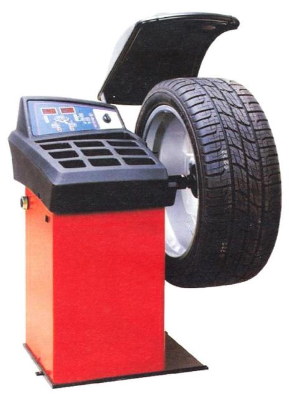 Rechnerunterstützte Reifenauswuchtmaschine für PKWs, Motorräder und leichte Nutzfahrzeuge.